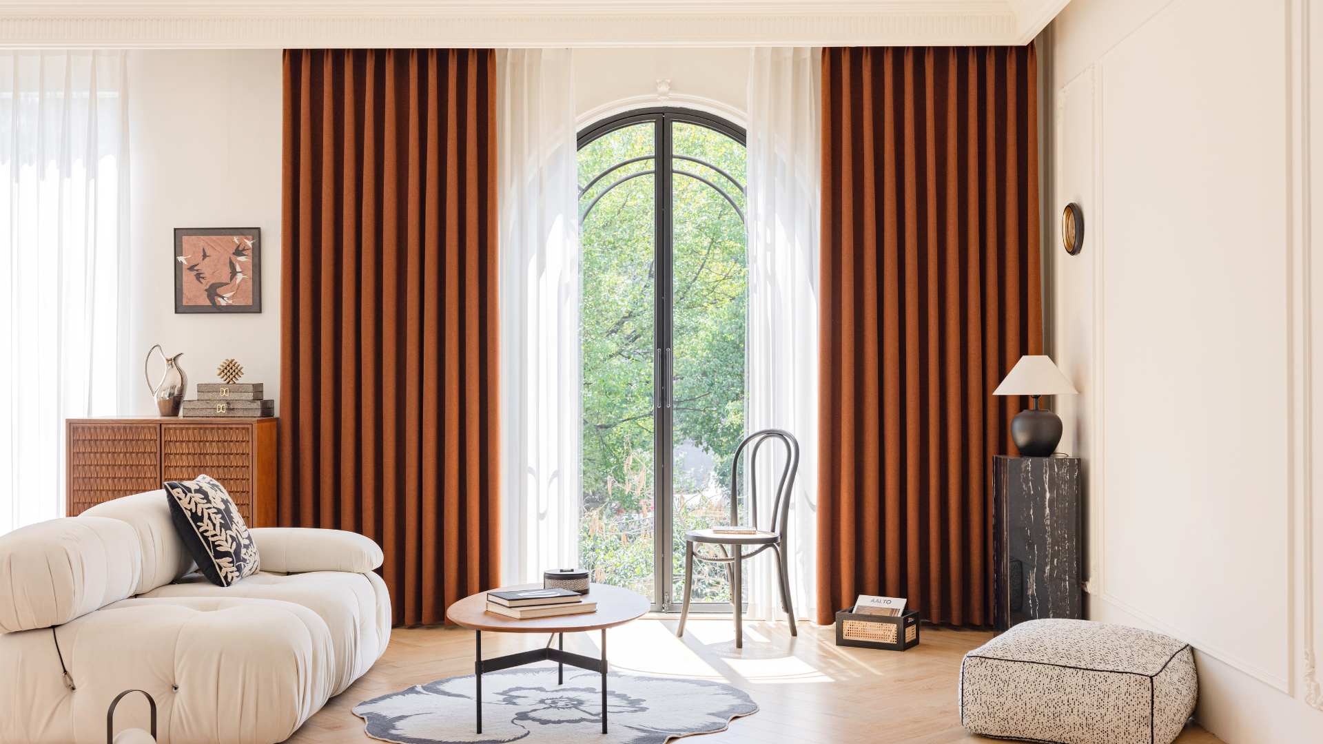 Unsere Thermovorhänge mit bis zu 99 % Verdunkelung bieten höchsten Licht- und Sichtschutz – für kompromisslose Ruhe in stilvoller Form.