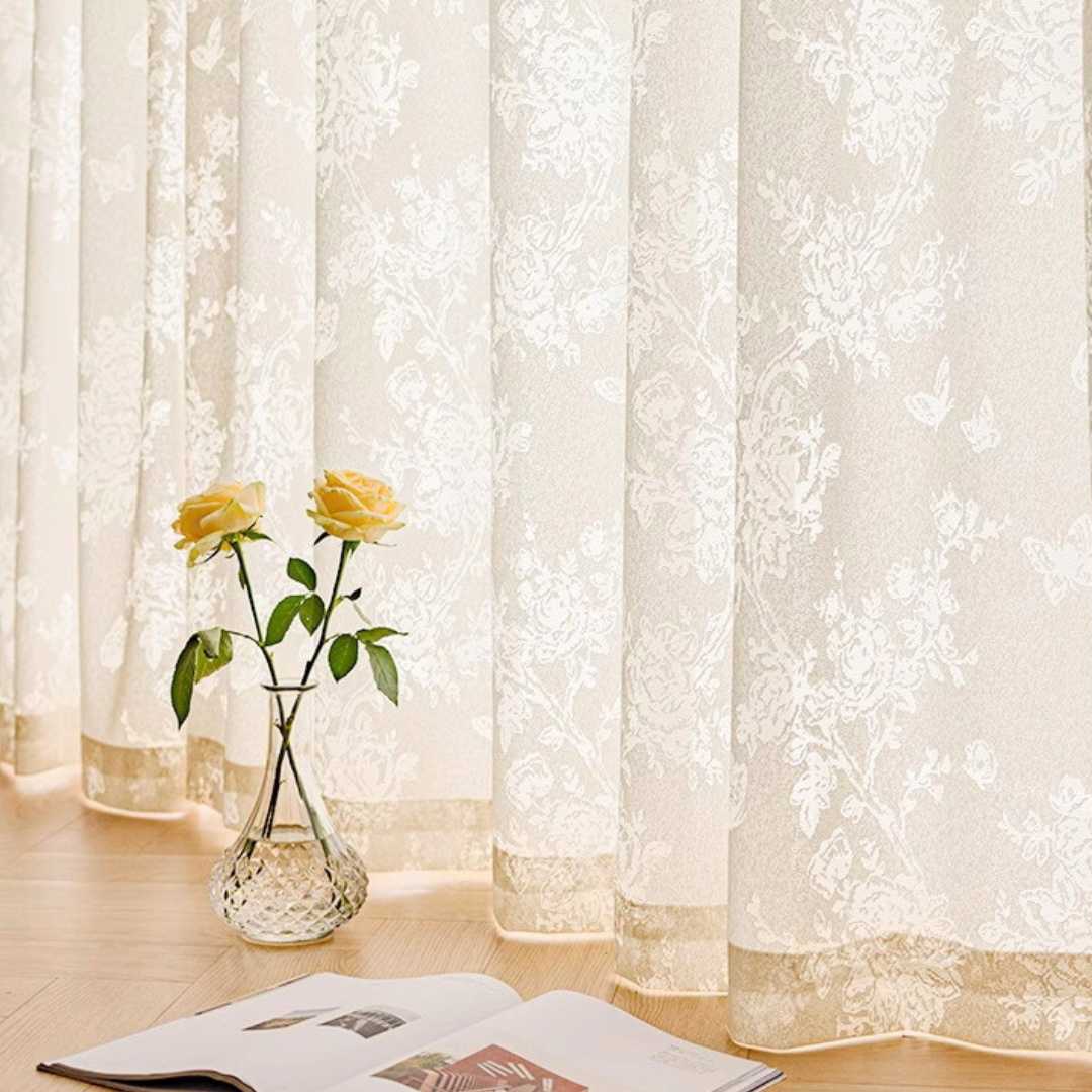 Transparenter Vorhang “MOONLIGHT” begeistert mit feiner Jacquardstruktur und zartem Blattmotiv, das im Licht leicht schimmert. Ideal für romantische Leseecken oder elegante Wohnräume – in warmem Cremeweiß mit traumhaftem Lichtspiel.